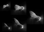 This image montage shows comet Hartley 2 as NASA's EPOXI mission approached and flew under the comet. The images progress in time clockwise, starting at the top left.
