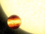 An artist's conception shows a gas-giant planet orbiting very close to its parent star, creating searingly hot conditions on the planet's surface. New research suggests that for three such planets lying from 50 to 150 light-years from Earth, strong winds thousands of miles per hour mix the atmosphere so that the temperature is relatively uniform from the permanently light side to the permanently dark side.