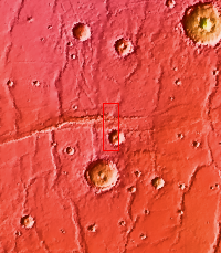 Today's VIS image shows a small portion of a east/west trending fracture in Thaumasia Planum.