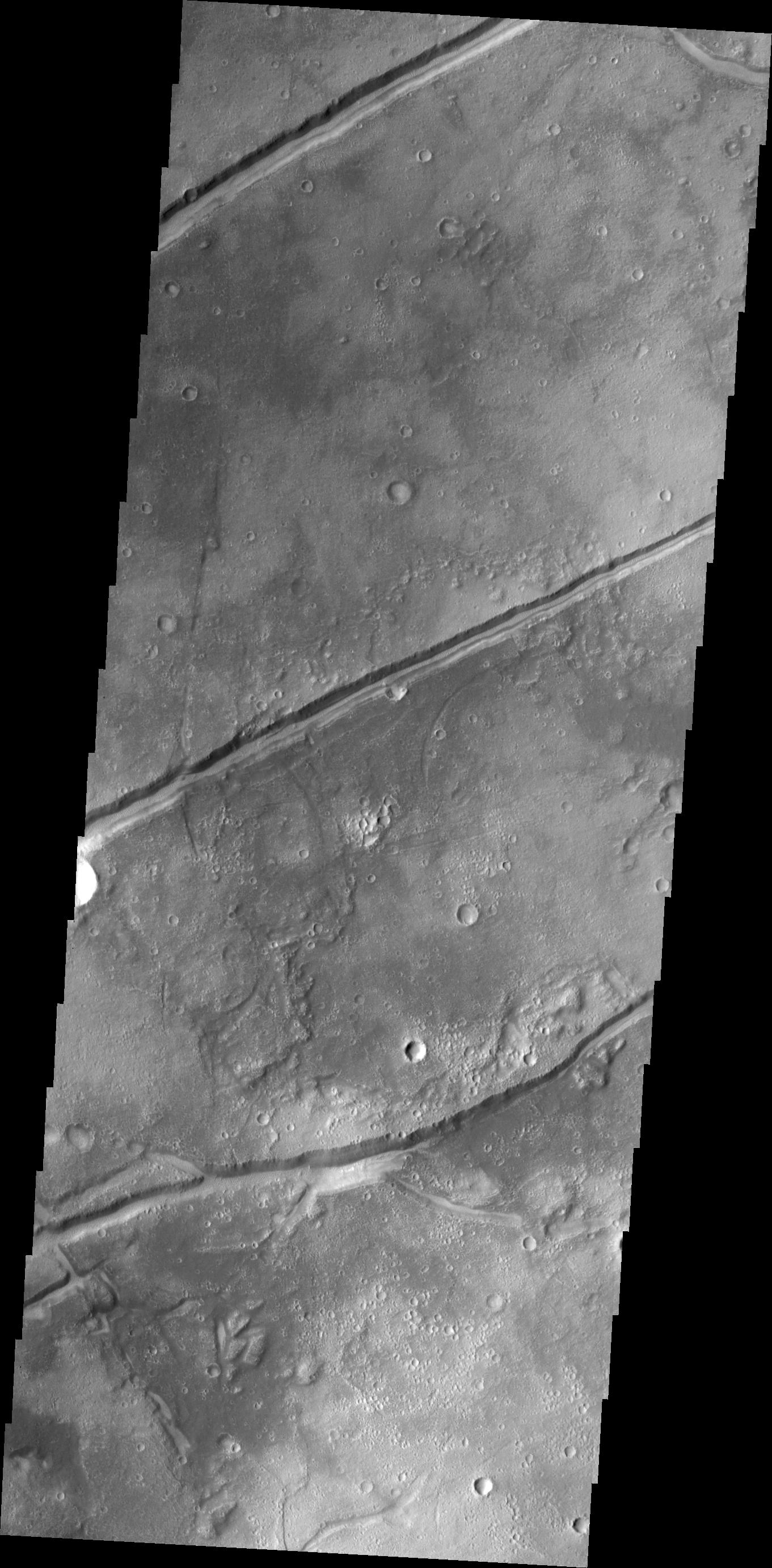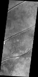 The fractures in this image are aligned with most of the fractures in Tempe Terra, but are some distance from the bulk of the fracturing.