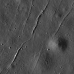 Small fractures in the mare floor of Tsiolkovskiy Crater are a departure from the usual scene of smooth mare pitted with impact craters. As the mare cools, fractures like these can form, or these fractures might have formed due to changes in the morphology of the Tsiolkovskiy impact crater over time. Image width is 580 meters, or 1902 feet; NAC Image M130822373R, incidence angle 73°.