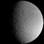 Instead, Rhea preserves a record of impacts at its post in the outer solar system. The large impact crater at the center left (near the terminator or boundary between day and night), called Izanagi, is just one of the numerous large impact basins on Rhea.