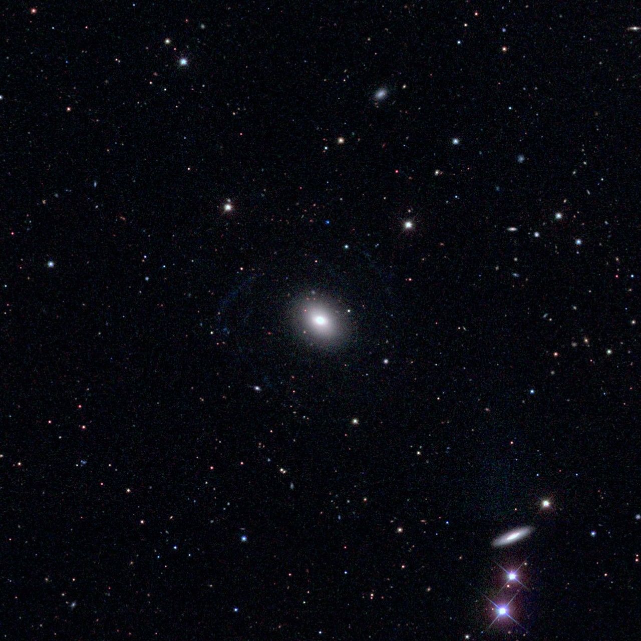The galaxy UGC 1382 has been revealed to be far larger and stranger than previously thought. Astronomers relied on a combination of ground-based and space telescopes to uncover the true nature of this "Frankenstein galaxy." The composite image shows the same galaxy as viewed with different instruments. The component images are also available.