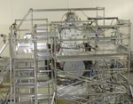 A scaffolding structure built around NASA's Wide-field Infrared Survey Explorer, or WISE, allows engineers to freeze its hydrogen coolant. The WISE infrared instrument is kept extremely cold by a bottle-like tank filled with frozen hydrogen, called the cryostat. The cryostat can be seen at the top of the spacecraft.