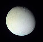 The view was created by combining images taken using ultraviolet, green and infrared spectral filters, and then was processed to accentuate subtle color differences. The images were taken with the Cassini spacecraft narrow-angle camera on Jan. 17, 2006 at a distance of approximately 153,000 kilometers (95,000 miles) from Enceladus and at a Sun-Enceladus-spacecraft, or phase, angle of 29 degrees. Image scale is 912 meters (2,994 feet) per pixel.