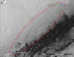 The precise route has not been determined, but the rover's path will likely be within the swath outlined in red.