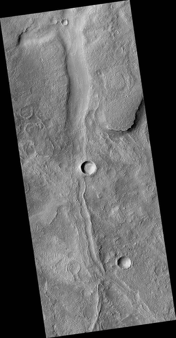 This image shows the transition from a regular channel to an inverted channel in Arabia Terra. The channel was once flowing with water that carved down into the bedrock to produce a depression.