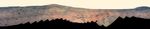 The hill on the horizon at far right is Husband Hill, to the north. Spirit acquired a 360-degree panorama (see PIA03610) from the summit of Husband Hill during August 2005). The hill dominating the left portion of the image is McCool Hill. Husband and McCool hills are two of the seven principal hills in the Columbia Hills range within Gusev Crater. Home Plate is in the inner basin of the range.