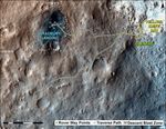 The mapped area is within Gale Crater and north of the mountain called Mount Sharp in the middle of the crater. After the first use of the drill, the rover's main science destination will be on the lower reaches of Mount Sharp. For broader-context images of the area, see PIA16064 and PIA16058.