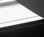 Near the left edge of the image, the appearance of the Encke Gap in Saturn's rings is being refracted. As the gap emerges from behind the planet, its image is bent less and less, following the decreasing density profile of the atmosphere with altitude. The appearance of the Cassini Division is warped as well, near the top of this scene. The refraction effect is slightly different in this visible light image than in a previously released infrared view (see PIA06656).