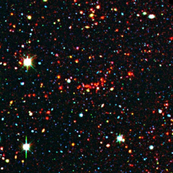 Astronomers have discovered nearly 300 galaxy clusters and groups, including almost 100 located 8 to 10 billion light-years away, using the space-based Spitzer Space Telescope and the ground-based Mayall 4-meter telescope at Kitt Peak National Observatory in Tucson, Ariz. The new sample represents a six-fold increase in the number of known galaxy clusters and groups at such extreme distances, and will allow astronomers to systematically study massive galaxies two-thirds of the way back to the Big Bang.