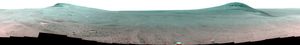 This image is an anaglyph version of the last 360-degree panorama taken by the Opportunity rover's Pancam from May 13…