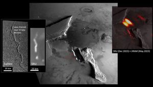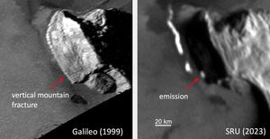Glowing thermal emission from active lava breakouts are observed by the Stellar Reference Unit (SRU) on NASA's Juno spacecraft on…