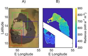 Glowing thermal emission from active lava breakouts are observed by the Stellar Reference Unit (SRU) on NASA's Juno spacecraft on…