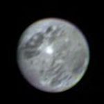 Voyager 1 took this picture of Jupiter's satellite Ganymede from a distance of 5 million miles (8.025 million kilometers) early on the morning of Feb. 26. Ganymede is the largest of Jupiter's 13 satellites. It is slightly larger than the planet Mercury, and has a density about twice that of water. That leads scientists to believe it is composed of a mixture of rock and ice. Ganymede is about four times brighter than Earth's Moon, and ground-based observations indicate a surface of water frost or ice. Details of the surface are not easily interpreted. The bright spot near the center of the picture is five times brighter than the Moon, and may contain more than surrounding areas. The bright pattern around the spot reminds scientists of ray craters on the Moon and Mercury, and the area may in fact be an impact crater that has exposed fresh, underlying ice. Further interpretation will require higher-resolution pictures. This color photo was taken through blue, green and orange filters and was assembled in the Image Processing Lab at Jet Propulsion Laboratory. JPL manages and controls the Voyager project for NASA's Office of Space Science.