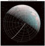 The north pole of Ganymede can be seen in center of this annotated image taken by the JIRAM infrared imager aboard NASA's Juno spacecraft on Dec. 26, 2019. Longitudinal lines appear every 30-degrees. The thick line is 0-degrees longitude. At the time the data for this image was captured, Juno was flying in the proximity of the north pole of the Jovian moon.