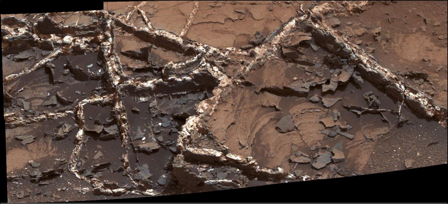 Prominent mineral veins at the "Garden City" site examined by NASA's Curiosity Mars rover vary in thickness and brightness, as seen in this image from Curiosity's Mast Camera (Mastcam).