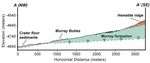 This graphic shows the geologic cross-section through lower Mount Sharp on Mars, corresponding to the segment A to A' shown in PIA18781. This cross-section provides an interpretation of the geologic relationship between the "Murray Formation," the crater floor sediments, and the hematite ridge. The cross-sectional view also highlights the impressive thickness of the Murray Formation -- around 650 feet (200 meters). NASA's Curiosity rover will be exploring this formation.