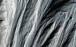 This image shows gullies that are large even by Mars standards, and much larger than the terrestrial landforms we call gullies. The length of some of these is over 6 kilometers (3.6 miles).