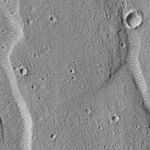 The new MOC image confirms the impression--from Viking images--that the polygon cracks-- troughs--are graben formed by faults. Unfortunately, the image does not provide ample information to distinguish between the various models for the origin of the polygons or the material in which they occur. The images, however, do show features of interest. The floors of the polygon troughs have bright, almost evenly spaced, windblown ripples or drifts(see also detailed sub-areas). Similar drifts can also be seen in and encroaching upon the surrounding, small impact craters. These drifts attest to the movement of sediment on the surface, and their brightness and shape suggests that they have not been active recently.