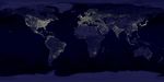 Global city lights. The Eastern U.S., Europe, and Japan are brightly lit by their cities, while the interiors of Africa, Asia, Australia, and South America remain (for now) dark and lightly populated. (Image by Craig Mayhew and Robert Simmon, NASA GSFC. Based on data from the Defense Meteorological Satellite Program).