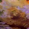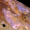 NASA's Galileo spacecraft acquired its highest resolution images of Jupiter's moon Io on 3 July 1999 during its closest pass to Io since orbit insertion in late 1995. This color mosaic uses the near-infrared, green and violet filters (slightly more than the visible range) of the spacecraft's camera which have been processed to enhance more subtle color variations. Most of Io's surface has pastel colors, punctuated by black, brown, green, orange, and red units near the active volcanic centers. A true color version of the mosaic has been created to show how Io would appear to the human eye.
