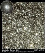 In results published this week in the journal Nature, the scientists report six unusual "microlensing" events inside the globular cluster M22. Microlensing occurs when a background star brightens momentarily as a foreground object drifts by. The gravitational field of the object amplifies light from a distant background star in the huge central bulge of our galaxy. The objects believed to cause these events are too dim to be seen directly.