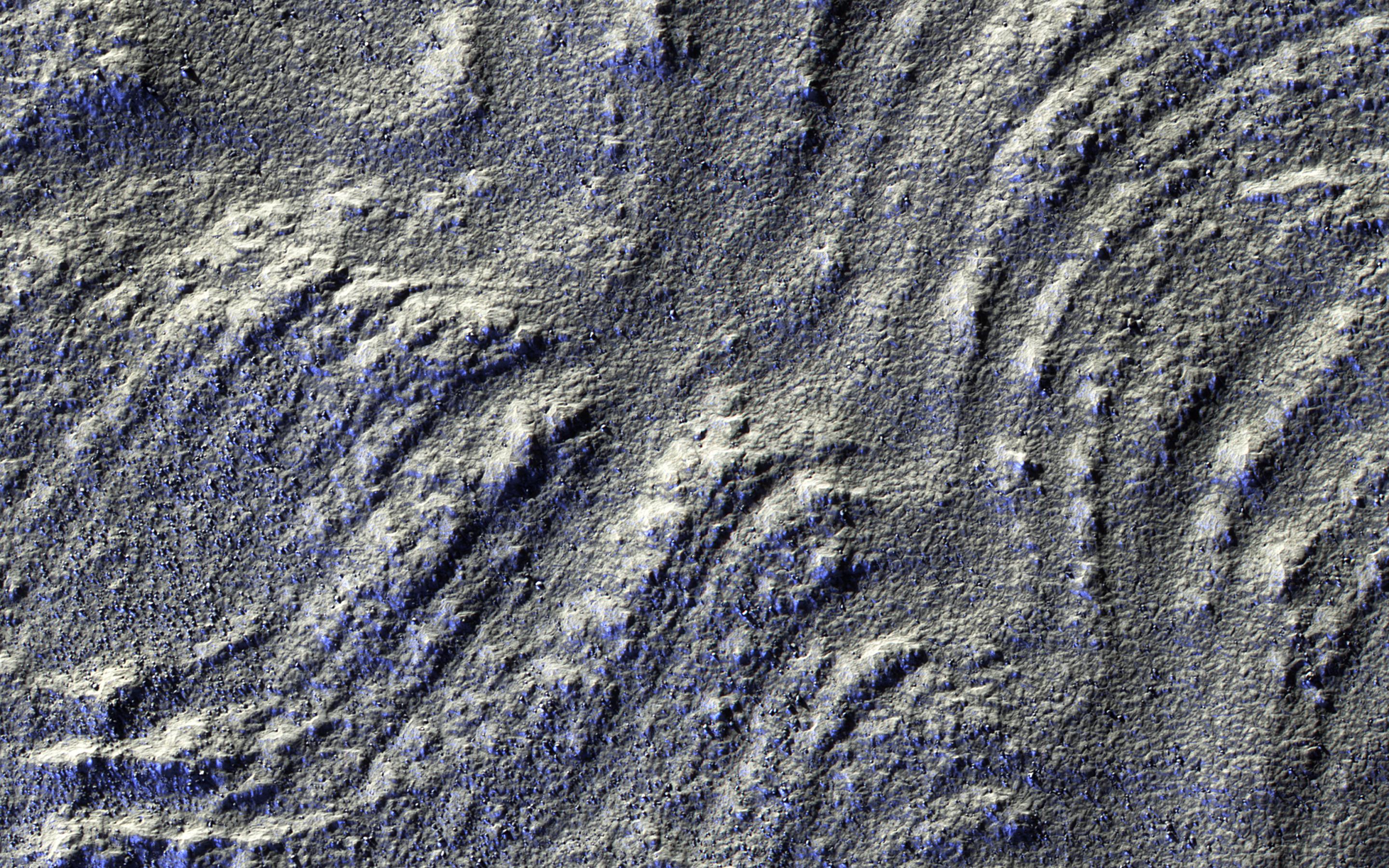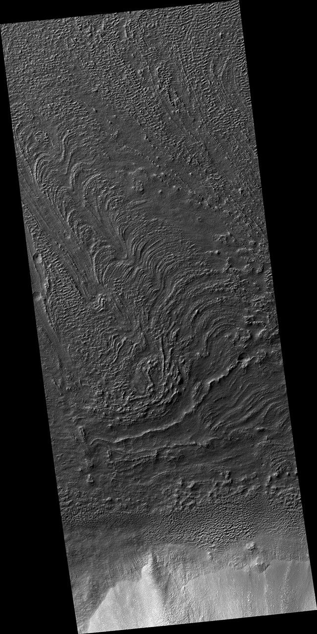 These flow-like structures were previously called "lobate debris aprons," but the Shallow Radar (SHARAD) instrument on MRO has shown that they are actually debris-covered flows of ice, or glaciers. There is no evidence for present-day flow of these glaciers, so they appear to be remnants of past climates.