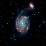 This image shows the merger of two galaxies, known as NGC 7752 (larger) and NGC 7753 (smaller), also collectively called Arp86. It is composed of images from three Spitzer Infrared Array Camera (IRAC) channels: IRAC channel 1 in blue, IRAC channel 2 in green and IRAC channel 3 in red.