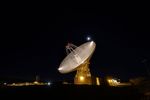 Goldstone's 230-foot (70-m) antenna tracks under a full moon. This photograph was taken on Jan. 11, 2012.