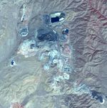 The Goldstrike in northeast Nevada is the largest gold mine in North America. The mine complex, (including the Betze-Post-Screamer open-pit, and Meikle and Rodeo underground mines) is owned and operated by the world's largest gold mining company, Barrick Gold. Gold occurs as microscopically fine grains, with an average grade of 0.1 ounces per ton of ore. Estimates of reserves are as high as 35 million ounces of gold. The image was acquired September 25, 2010, covers an area of 15 by 15 km, and is located at 41 degrees north, 116.4 degrees west.