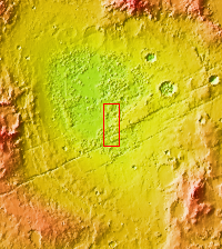This VIS image shows part of Gorgonum Chaos. Chaotic regions form when groundwater escapes to the surface, undermining it and causing the ground to collapse. The linear depressions at the bottom of the image are part of Sirenum Fossae. Gorgonum Chaos is located in Terra Sirenum.