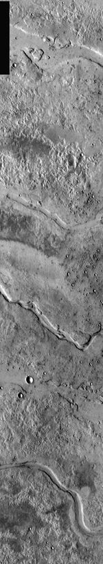 This day time IR image shows a group of channels that originate from the Elysium volcanic field. Called Granicus Vallis, these channels are related to the volcanic activity of Elysium Mons and may be lava channels rather than fluvial. Note the lava flows at the top of the image.