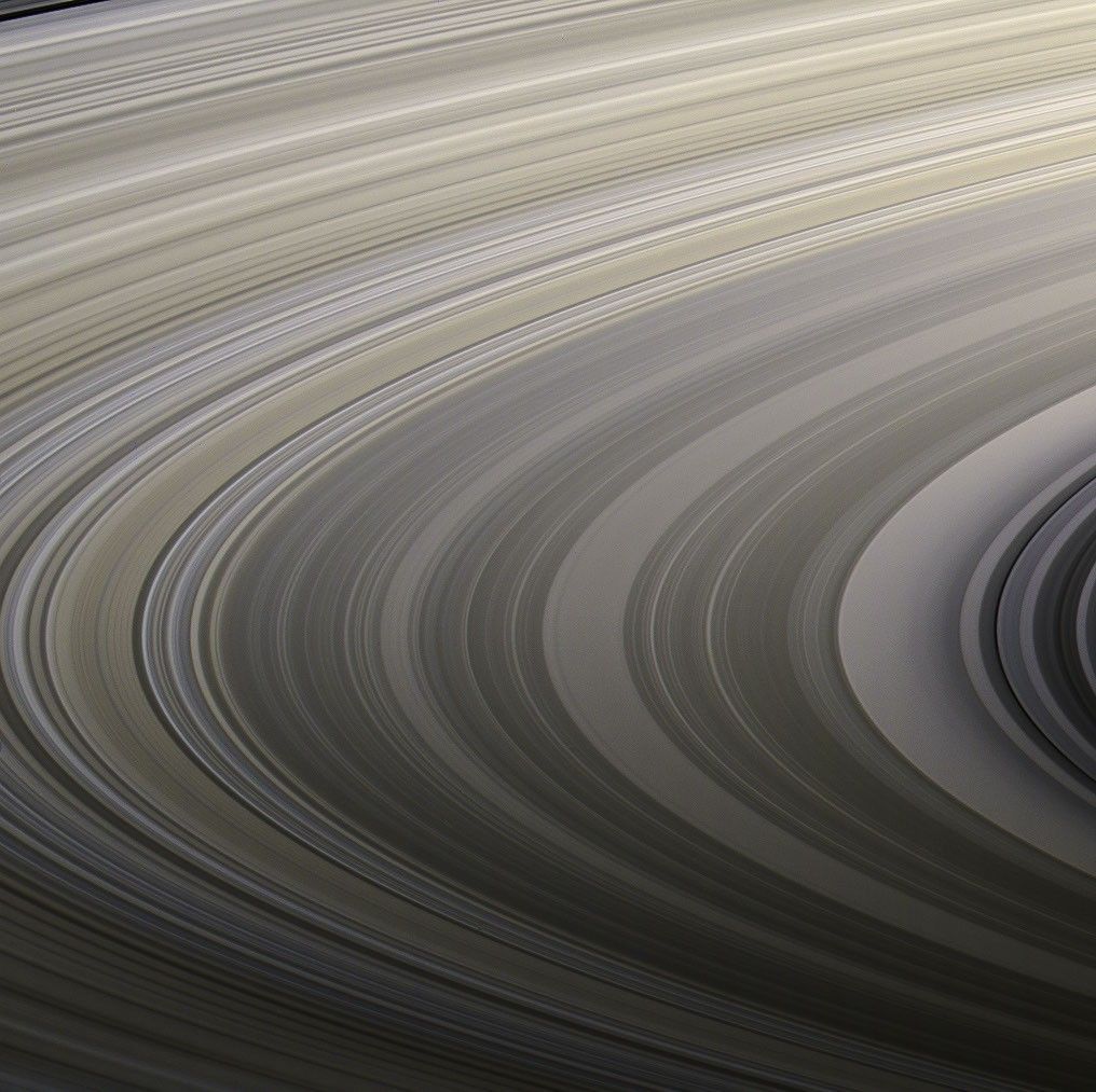 Saturn's rings display their subtle colors in this view captured on Aug. 22, 2009, by NASA's Cassini spacecraft. The particles that make up the rings range in size from smaller than a grain of sand to as large as mountains, and are mostly made of water ice. The exact nature of the material responsible for bestowing color on the rings remains a matter of intense debate among scientists.