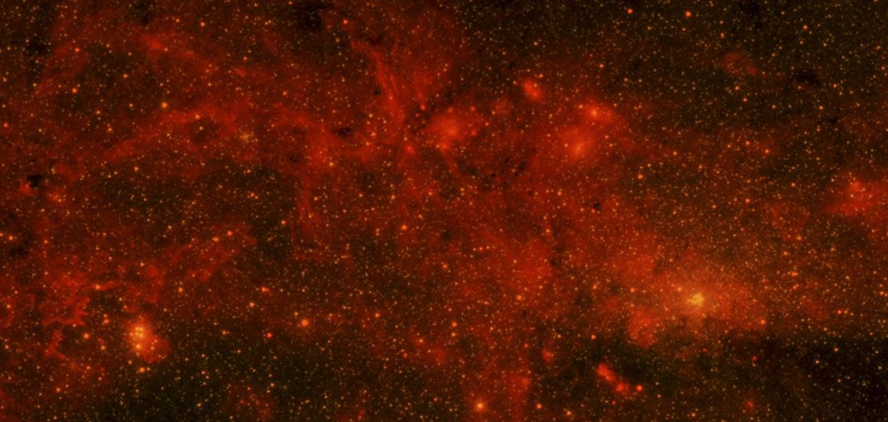 In this spectacular image, observations using infrared light and X-ray light see through the obscuring dust and reveal the intense activity near the galactic core. Note that the center of the galaxy is located within the bright white region to the right of and just below the middle of the image. The entire image width covers about one-half a degree, about the same angular width as the full moon.