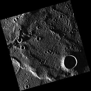 This image features a simple crater surrounded by a relatively smooth surface. The pristine crater rim is an indication that this is a relatively fresh crater. The high incidence angle at which this image was taken results in a large shadow covering the crater floor, making it appear very deep -- the perfect depth for a future groundhog spotting.