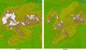 These two images show exactly the same area in South America, the Guiana Highlands straddling the borders of Venezuela, Guyana and Brazil. The image on the left was created using the best global topographic data set previously available, the U.S. Geological Survey's GTOPO30. In contrast, the image on the right was generated with a new data set recently released by the Shuttle Radar Topography Mission (SRTM) called SRTM30, which represents a significant improvement in our knowledge of the topography of much of the world.