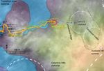 As NASA's Mars Exploration Rover Spirit continues to explore the "Columbia Hills" within Gusev Crater, scientists are planning to take a closer look for layered rocks in a steep valley straight ahead before directing the rover to turn south toward the summit of "Husband Hill." Two of the geologic formations the six-wheeled robotic geologist has discovered during 2004 are shown here. One is labeled "Columbia Hills material," representing bedrock of the higher slopes and peaks, and one is labeled "transition zone material," representing rocks that are gradational in character and composition between the hills to the east and the plains to the west. The map also shows Spirit's line of travel through the rover's 344th martian day, or sol (Dec. 21, 2004), beginning on the left edge at about the 182nd sol (July 7, 2004).