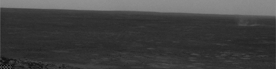 This movie clip shows movement of dust by a gust of wind inside Mars' Gusev Crater. It consists of frames taken by the navigation camera on NASA's Mars Exploration Rover Spirit during the afternoon of the rover's 495th martian day, or sol (May 25, 2005). Contrast has been enhanced for anything in the images that changes from frame to frame, that is, for the dust moved by wind.