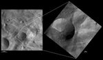 These images are located in Vesta's Tuccia quadrangle, in Vesta's southern hemisphere. NASA's Dawn spacecraft obtained the left image with its framing camera on Oct. 24, 2011. This image was taken through the camera's clear filter. The distance to the surface of Vesta is 700 kilometers (435 miles) and the image has a resolution of about 69 meters (226 feet) per pixel. This image was acquired during the HAMO (high-altitude mapping orbit) phase of the mission. NASA's Dawn spacecraft obtained the right image with its framing camera on Dec. 21, 2011. This image was taken through the camera's clear filter. The distance to the surface of Vesta is 272 kilometers (169 miles) and the image has a resolution of about 25 meters (82 feet) per pixel. This image was acquired during the LAMO (low-altitude mapping orbit) phase of the mission.
