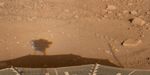 This image was acquired by NASA's Phoenix Mars Lander's Surface Stereo Imager (SSI) in the late afternoon of the 30th Martian day of the mission, or Sol 30 (June 25, 2008). This is hours after the beginning of Martian northern summer. SSI used its natural-color filters, therefore the color is the color you would see on Mars. The image shows shadows from the SSI (left) and from the meteorological station mast (right) stretching toward the east as the sun dropped low in the west.