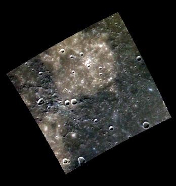 Today's image is centered on a large unnamed crater to the northeast of Dali. The crater has been flooded with smooth plains that have a relatively high reflectance and reddish color compared to the average surface of Mercury. The surrounding area, by contrast, has low reflectance and blue color. The high-