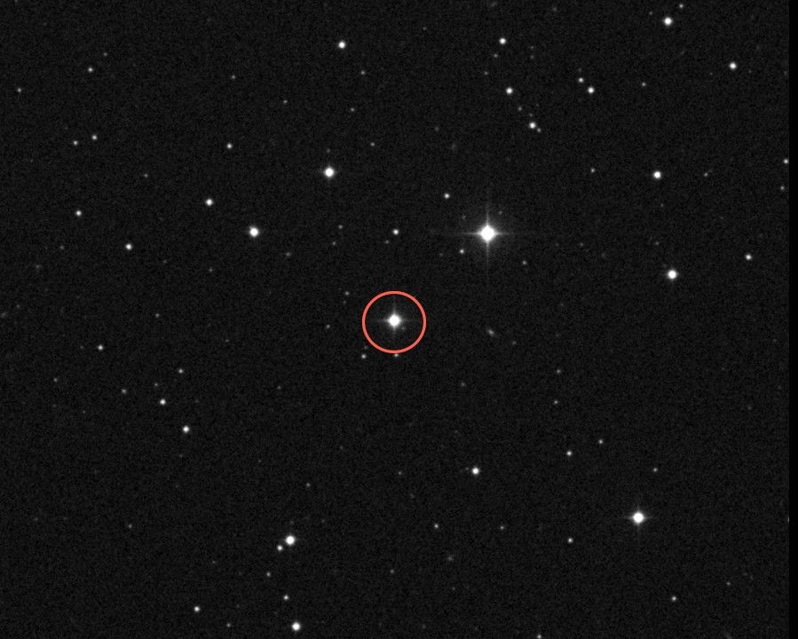 At the center of this image is the star AC +79 3888, also known as Gliese 445, located 17.6 light-years from Earth. NASA's Voyager 1 spacecraft, which is on a trajectory out of our solar system, is headed toward an encounter with AC +79 3888. In about 40,000 years, Voyager 1 will be closer to this star than our own sun.