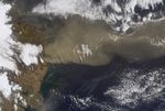 NASA's Terra satellite flew directly over Iceland on April 19, 2010, allowing the Multi-angle Imaging SpectroRadiometer (MISR) instrument to capture a series of images of the Eyjafjallajökull volcano and its erupting ash plume. Figure 1 is a view from MISR's nadir (vertical-viewing) camera, and covers an area measuring 412.5 by 279 kilometers (256.3 by 173.4 miles). The companion image, Figure 2, is a stereo anaglyph (see also PIA13051) generated from the nadir and 46-degree forward-viewing cameras. The plume height can be estimated by viewing the anaglyph with red/blue 3-D glasses (place the red filter over your left eye). In these images, north is at the left, and east at the top. In addition to the main plume, there are some smaller streamers visible to the east (above) it. They are at lower altitude than the main plume. Due to the presence of wind, which causes the plume features to move between successive camera views, the anaglyph gives the erroneous impression that they are below the land surface. A quantitative computer analysis is necessary to separate out wind and height. This is shown in Figure 3, which contains a portion of the nadir image in the top panel, covering an area of 189.5 by 136 kilometers (177.7 by 84.5 miles). The lower panel of Figure 3 contains a map of heights, corrected for the effects of wind, along with a color scale. The smaller streamers are just several hundred meters above the surface, whereas the main plume extends to an altitude of about 4.5 kilometers (2.8 miles). This is smaller than the 7.3 kilometer (4.5 mile) altitude measured by MISR on April 14, 2010, though conditions remain highly dynamic.