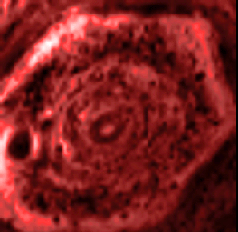 This infrared movie from NASA's Cassini mission shows the churning of the curious six-sided jet stream at Saturn's north pole known as "the hexagon." The movie, which was sped up here, covers 2 hours and 45 minutes in real time. It was made from data obtained by Cassini's visual and infrared mapping spectrometer in the 5-micron wavelength of radiation. This channel shows clouds in silhouette against infrared light emanating from Saturn's interior. These clouds are composed of relatively large particles and are thick, blocking light so they appear dark. These kinds of clouds tend to lie deep in Saturn's atmosphere, at about 3 bars of pressure.