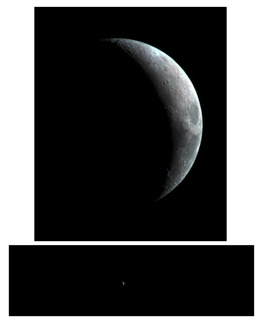 This crescent view of Earth's Moon in infrared wavelengths comes from a camera test by NASA's Mars Reconnaissance Orbiter spacecraft on its way to Mars. The mission's High Resolution Imaging Science Experiment camera took the image on Sept. 8, 2005, while at a distance of about 10 million kilometers (6 million miles) from the Moon. The dark feature on the right is Mare Crisium. From that distance, the Moon would appear as a star-like point of light to the unaided eye. The test verified the camera's focusing capability and provided an opportunity for calibration. The spacecraft's Context Camera and Optical Navigation Camera also performed as expected during the test.