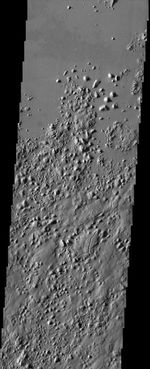 Note: this THEMIS visual image has not been radiometrically nor geometrically calibrated for this preliminary release. An empirical correction has been performed to remove instrumental effects. A linear shift has been applied in the cross-track and down-track direction to approximate spacecraft and planetary motion. Fully calibrated and geometrically projected images will be released through the Planetary Data System in accordance with Project policies at a later time.