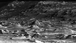 The hills in the foreground are several tens of meters to about 100 meters (tens of yards to about 100 yards) wide and several tens of meters or yards tall. The light-toned layers of rock likely consist of material laid down by the wind or under water. The dark-toned material is a layer of windblown sand on the surface. The orientations of these layers were measured in three dimensions in order to understand the region's geologic history. The particular patterns in which these rocks are oriented to the surrounding Candor Chasma are most consistent with the idea that the layers formed as basin-filling sediment, analogous to the sedimentary rocks of the Paradox Basin in southeastern Utah. This implies that these sediments are younger than the formation of the chasm, providing important constraints on the maximum age of groundwater (about 3.7 billion years) within the region.