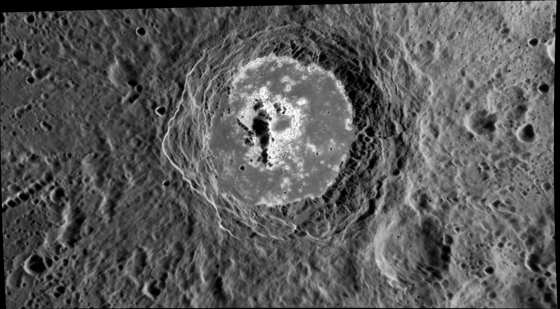 Scale: The large crater is approximately 90 km (56 mi.) across.