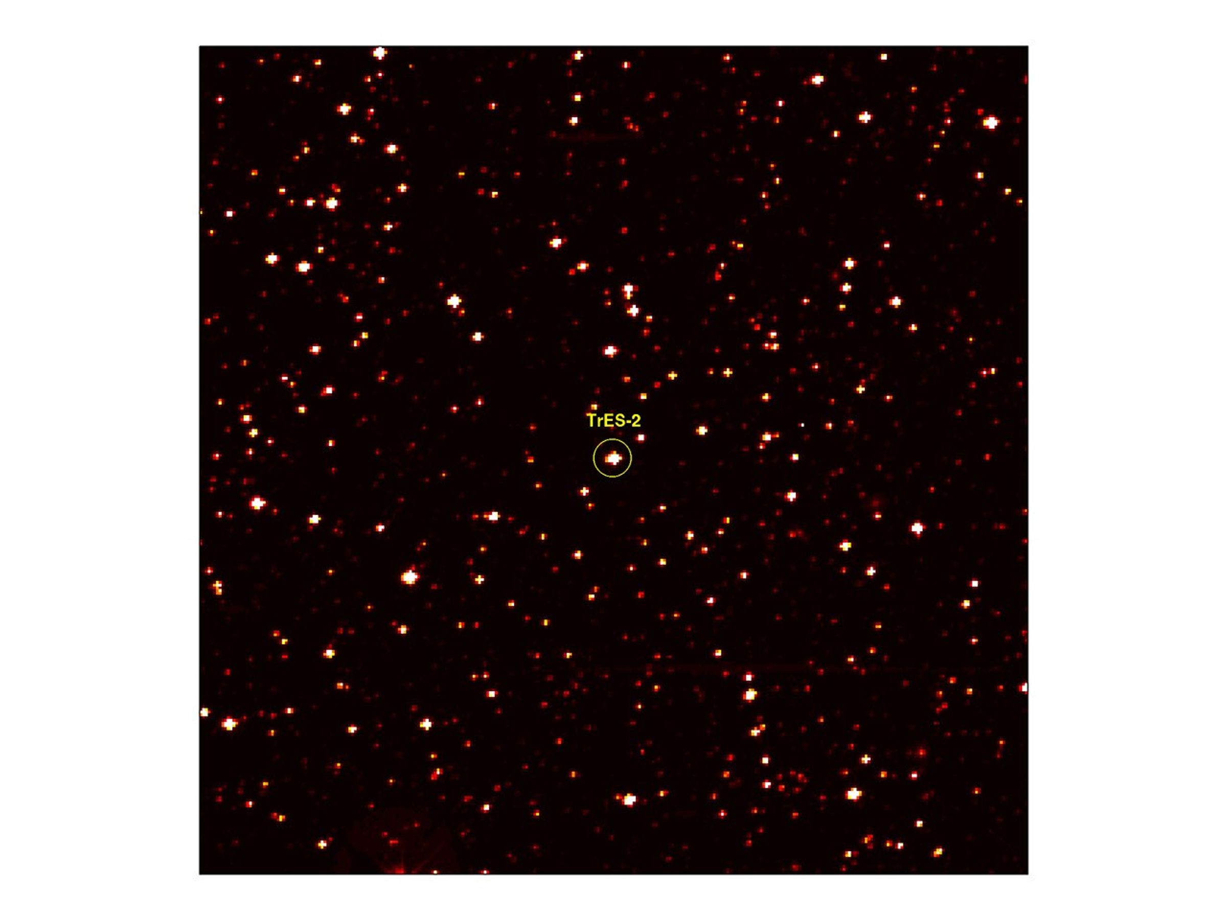 This image zooms into a small portion of Kepler's full field of view — an expansive, 100-square-degree patch of sky in our Milky Way galaxy. At the center of the field is a star with a known "hot Jupiter" planet, named "TrES-2," zipping closely around it every 2.5 days. Kepler will observe TrES-2 and other known planets as a test to demonstrate that it is working properly, and to obtain new information about those planets.